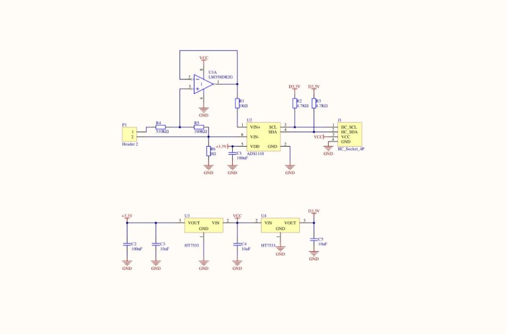ADCユニット v1.1側のI2Cラインにプルアップ抵抗が付いているのでプルアップ抵抗は無しです。