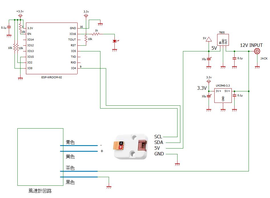 ESP-WROOM-02が3.3V系なので5V系のM5Stack用パーツを使う場合には親和性が悪く、電源が風速