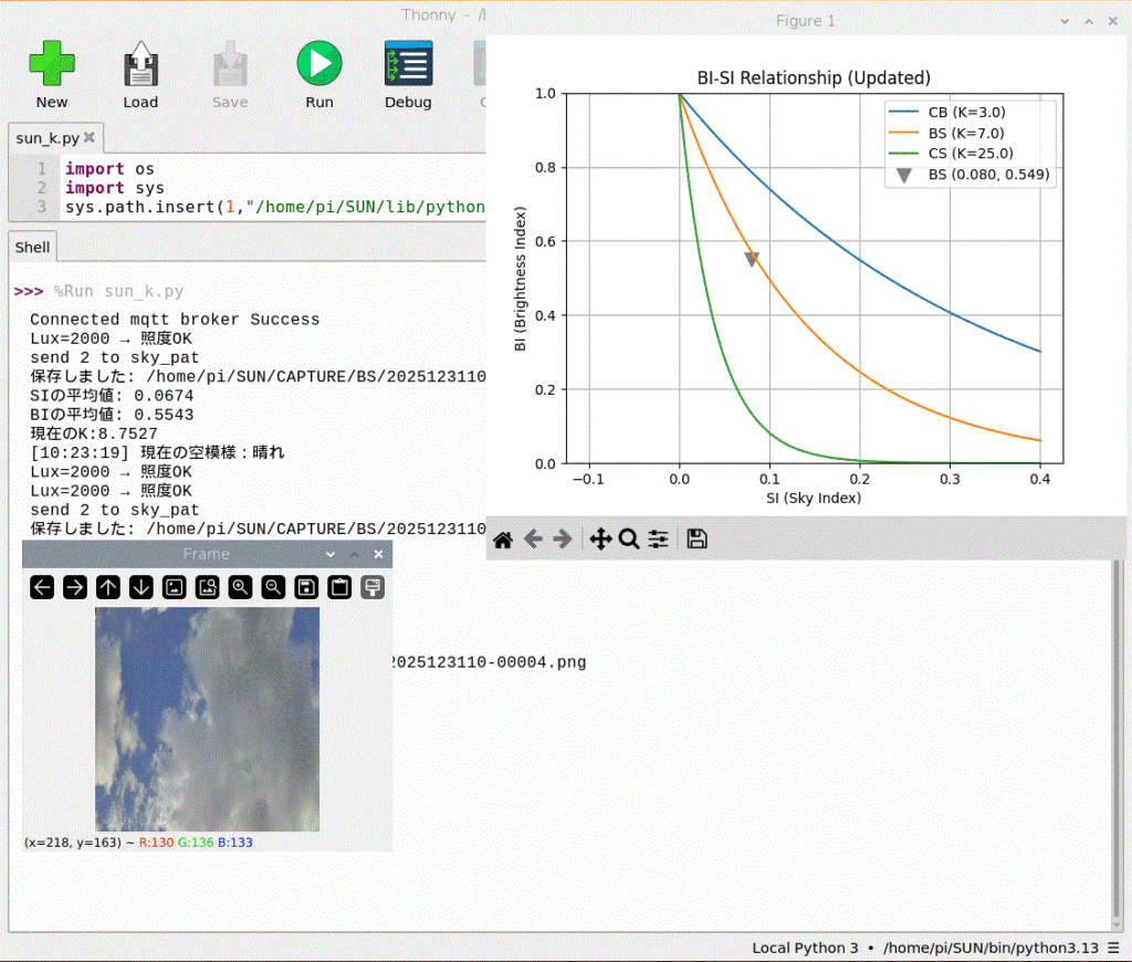 先に製作実験したK値による予測よりは、大分良くなりましたが、夕方時の色彩が無くなった頃