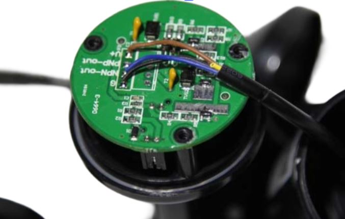信号出力は青で黄色は接続無し