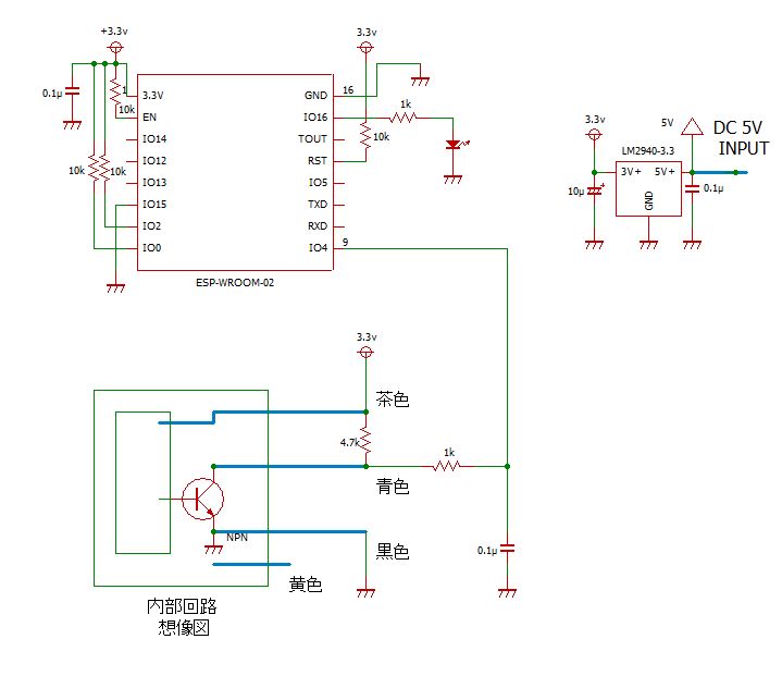 この機種の信号ラインにはノイズが乗っているのでこのままESP-WROOM-02のポートに入力しても
