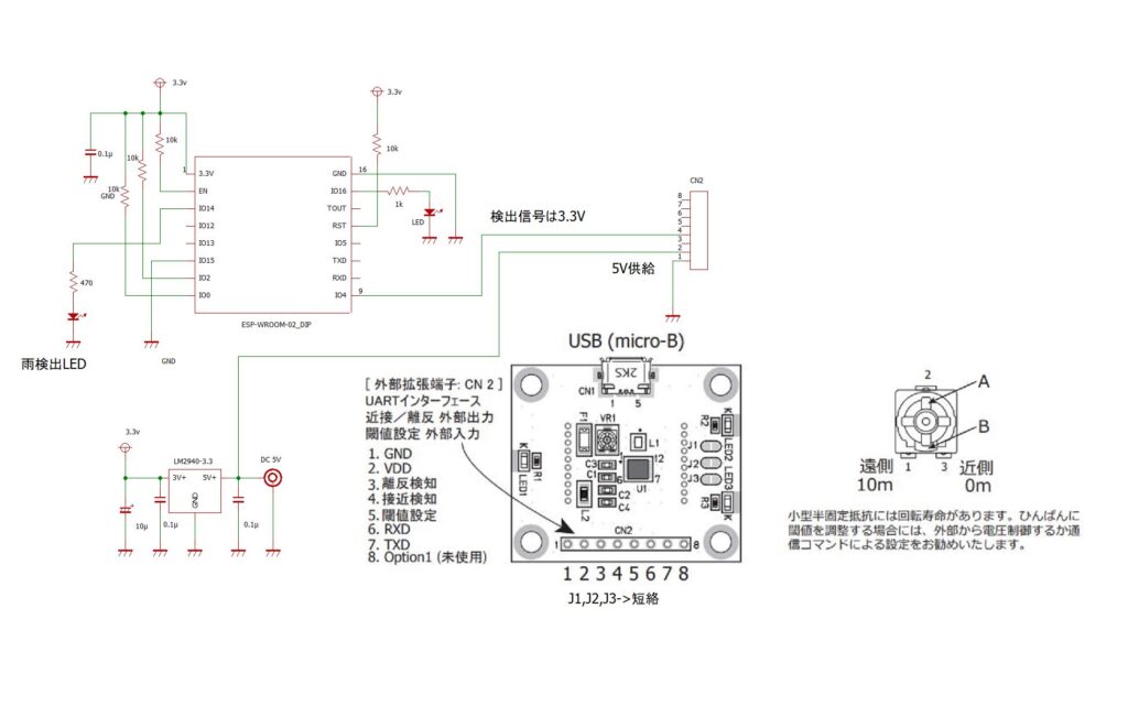 雨センサー以外にお天気センサーも組み込みが必要にになりますので、ここでは原理的な解説に留め