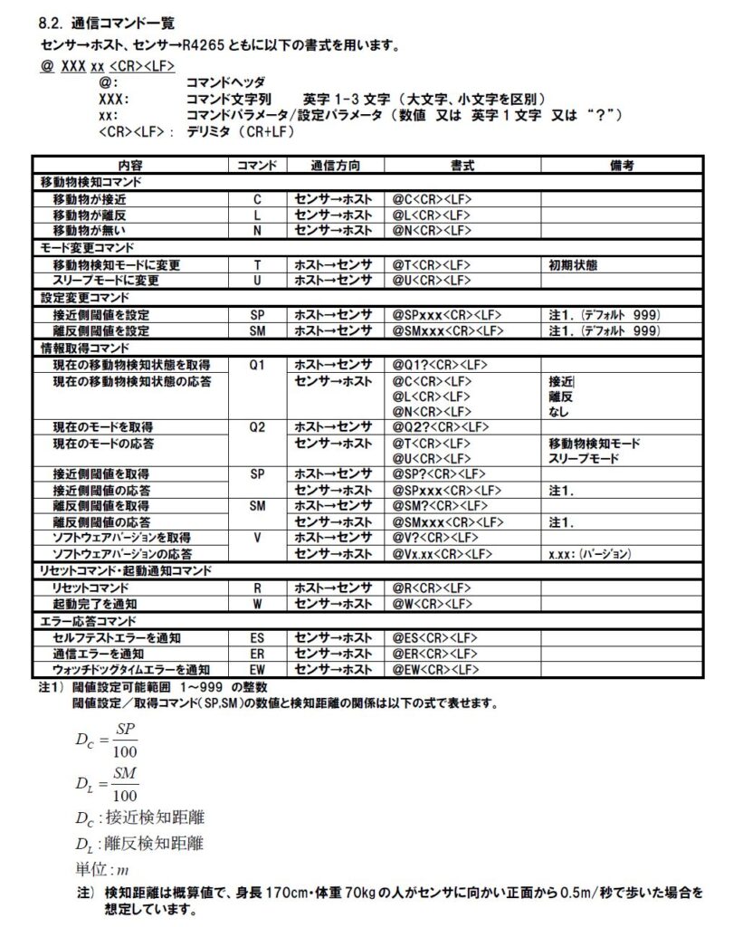 Serial.print("@T\r\n"); // 検知モード