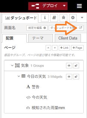 デバッグ用の天気ボタンをクリックすれば、ダッシュボード上に天気アイコンが表示されます。